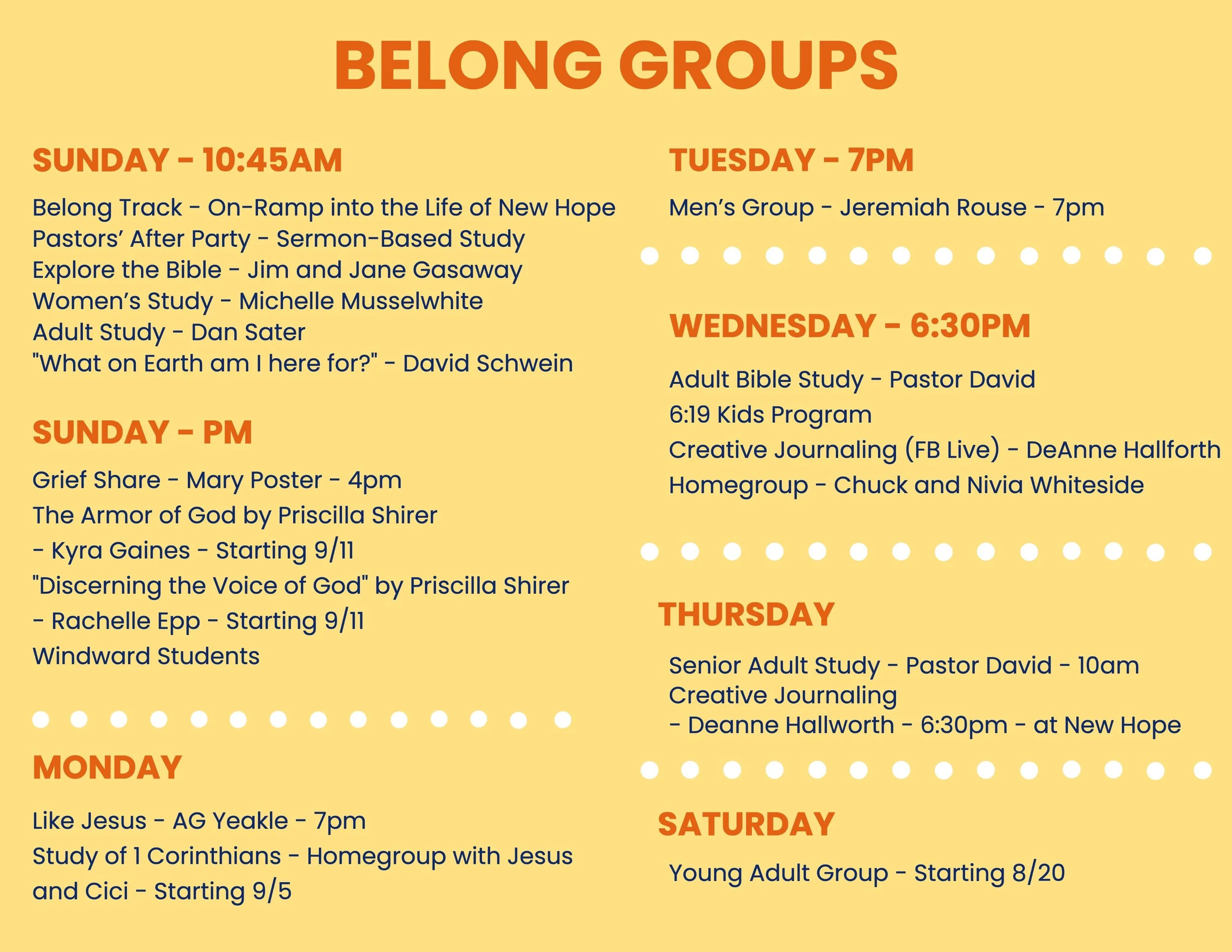 Have you been missing the fellowship with other believers and with God’s Word? We’d like to invite you to join a small group. We call them BELONG Groups.
